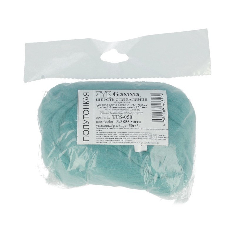 " Gamma" TFS- 050 " Шерсть для валяния" 100% полутонкая шерсть 50г №3855 мята