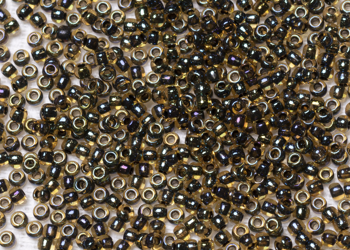 Бисер Япония круглый 11/0 10г 0244 светлый топаз/чёрный радужный, окрашенный изнутри