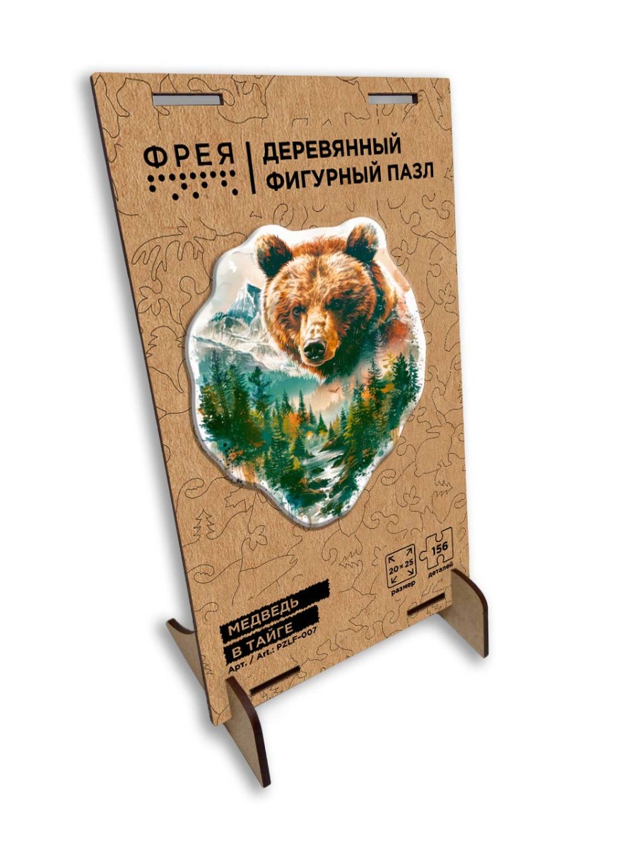 " ФРЕЯ" PZLF- 007 Пазл фигурный деревянный " Медведь в тайге" 156 элемент.