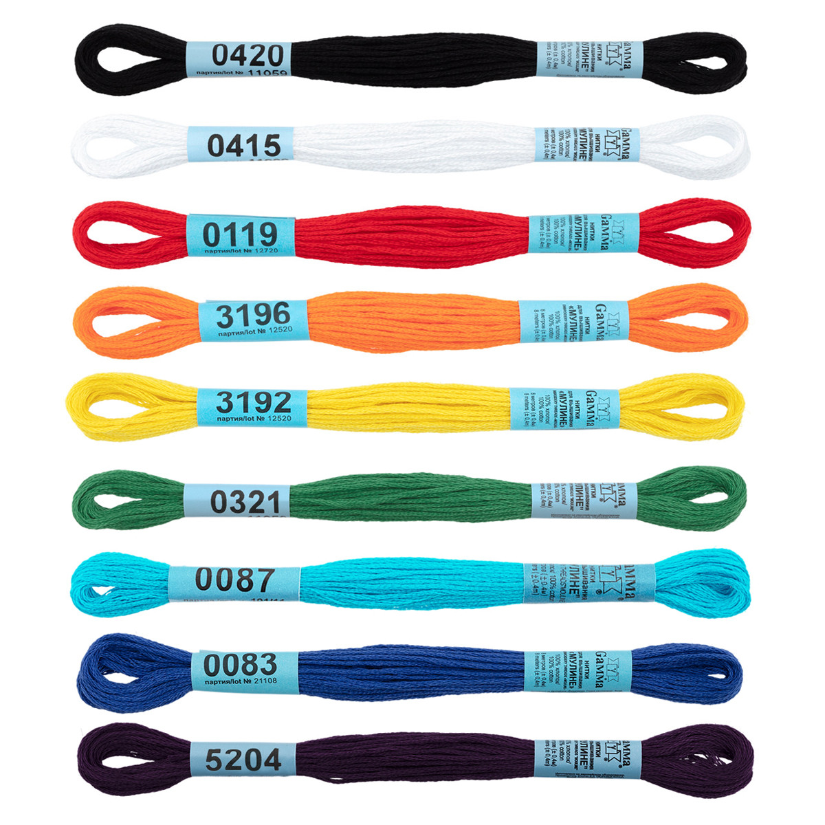 Нитки для вышивания Gamma набор мулине " Ученический" 100% хлопок 9 цв. x 8 м АССОРТИ