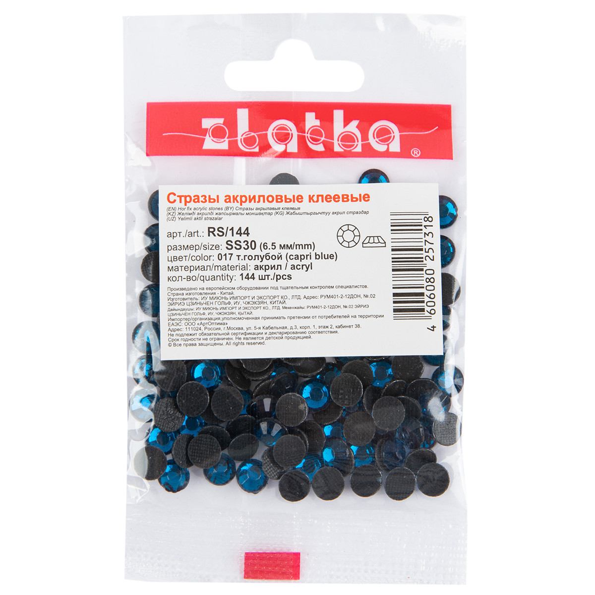 Страз клеевой " Zlatka" RS/ 144 SS30 6 - 6. 5 мм акрил 144 шт в пакете с еврослотом 008 т. желтый ( topaz)